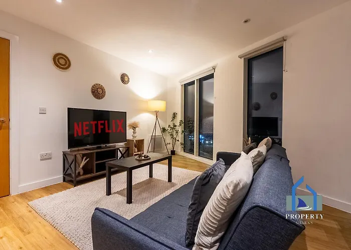 City Condo-Terrace-Gym-Games Room -Free Secure Parking- Manchester dispose d'un vestiaire et d'un coin salon, ainsi que de conforts tels qu'une climatisation. Pour plus de commodité, une toilette séparée, une douche et une machine à laver sont disponibles dans le domicile de 700 m². Un sèche-cheveux et des draps de bain sont également accessibles.